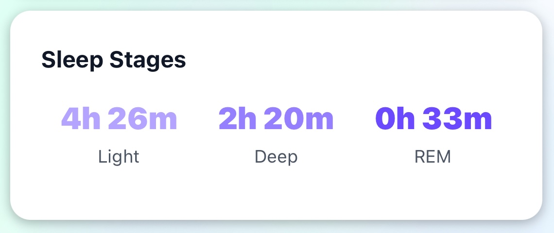 • Sleep stages (REM, deep, light)